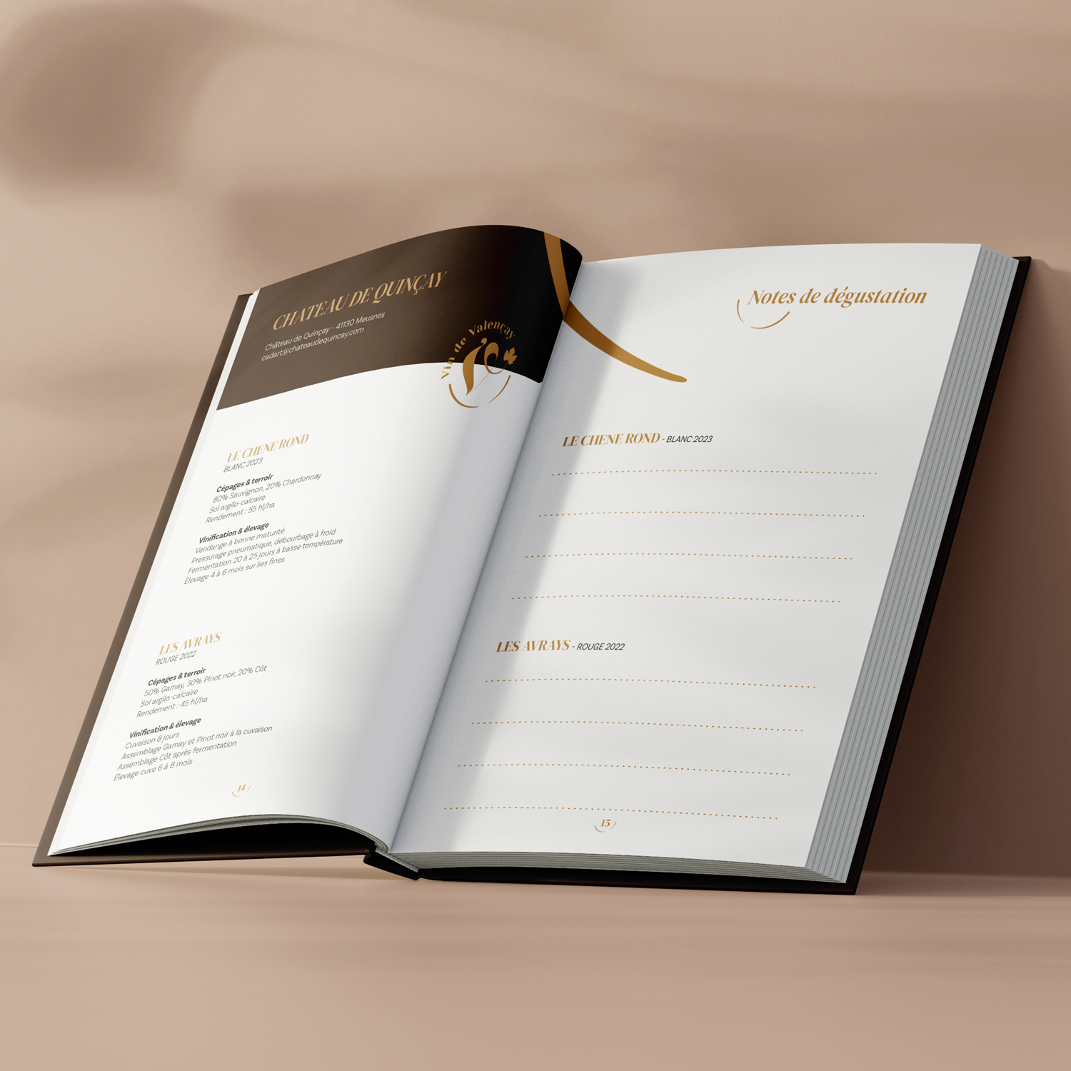 Conception et mise en page d’un carnet de dégustation dédié à l’Appellation Valençay.