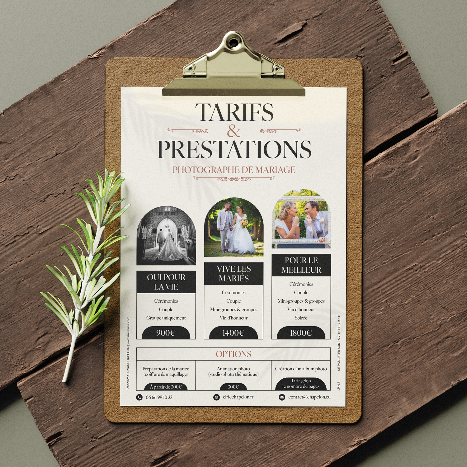 Cartes de visite pour un photographe de mariage