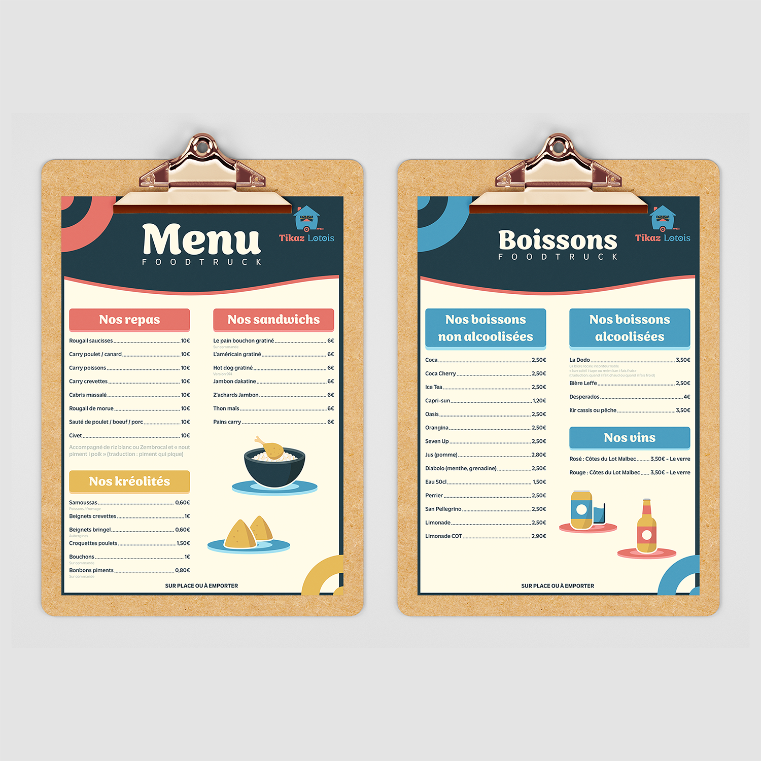 Menu A4 pour un foodtruck